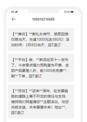 企業(yè)通過短信群發(fā)傳遞促銷折扣信息,發(fā)放電子優(yōu)惠券,擴大業(yè)務(wù)受眾群體,例如通過發(fā)送短信優(yōu)惠券或優(yōu)惠碼